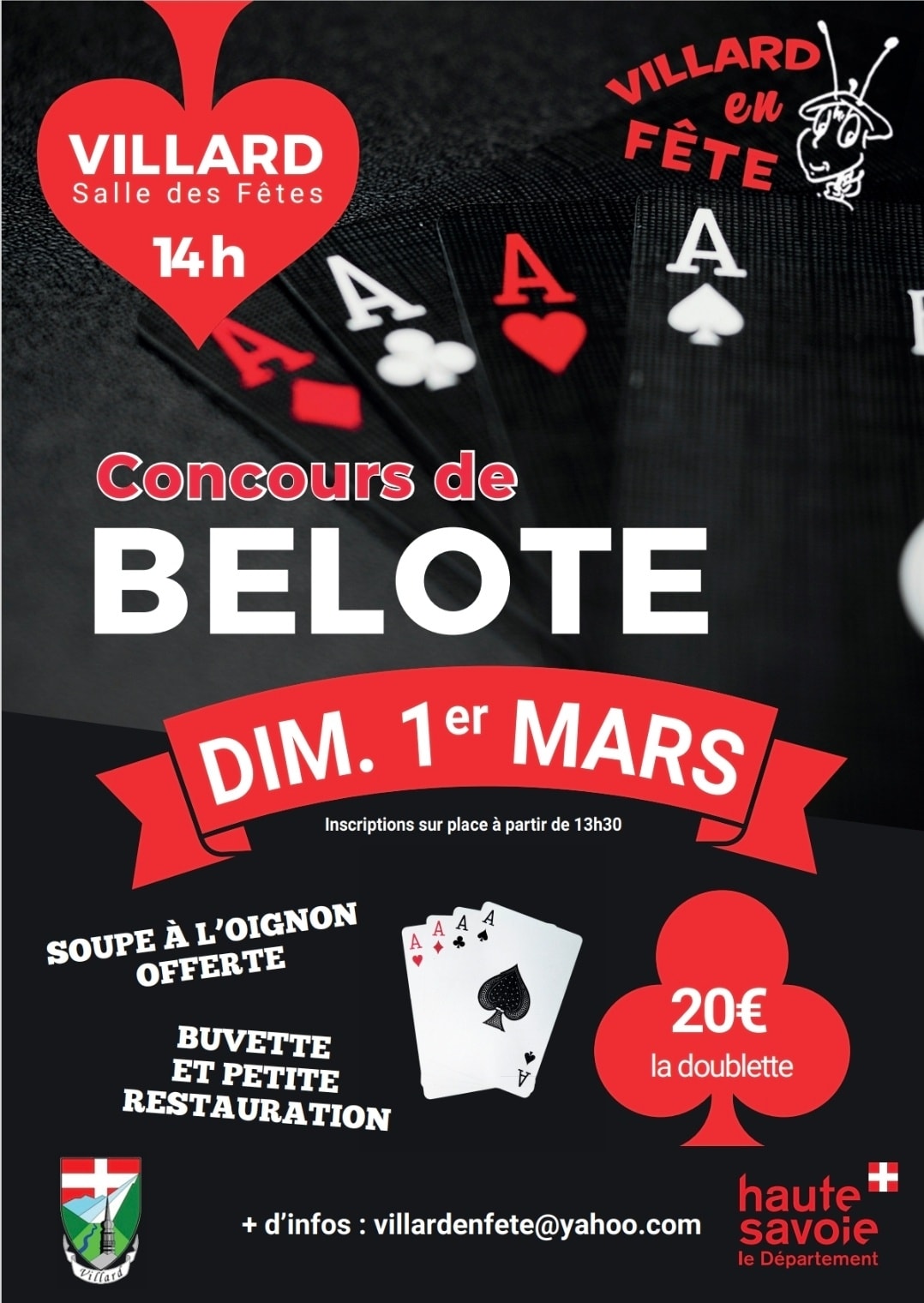Concours de belote proposé par l'association Villard en fête le dimanche 1 mars 2026 dès 14h00 sur inscription
