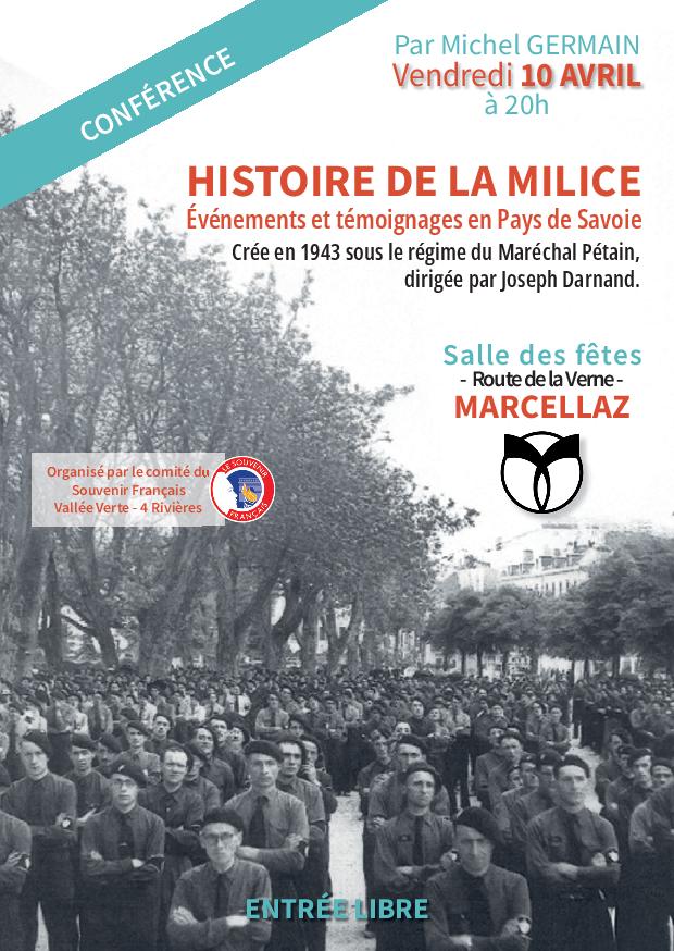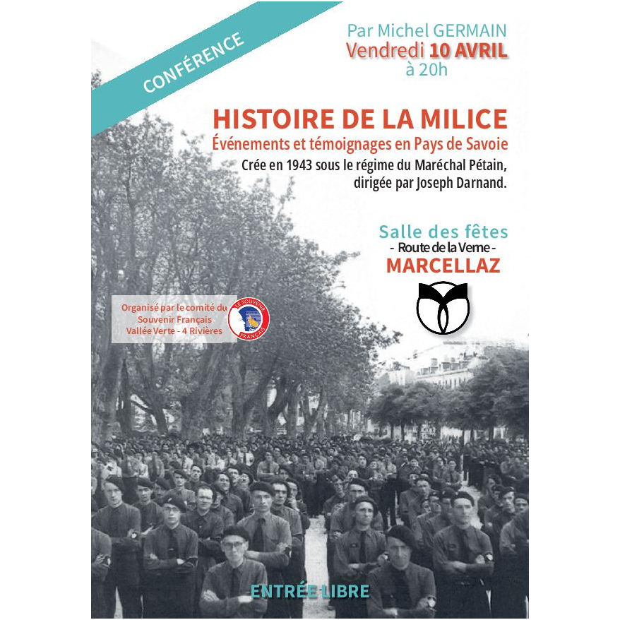 Cette conférence sera présentée par l’historien Michel Germain, spécialiste de l’histoire de la Seconde Guerre mondiale et de la Résistance en Haute-Savoie. Il évoquera le rôle et les actions de la Milice pendant l’Occupation, ainsi que le contexte de la Résistance dans la région, notamment autour du Plateau des Glières.